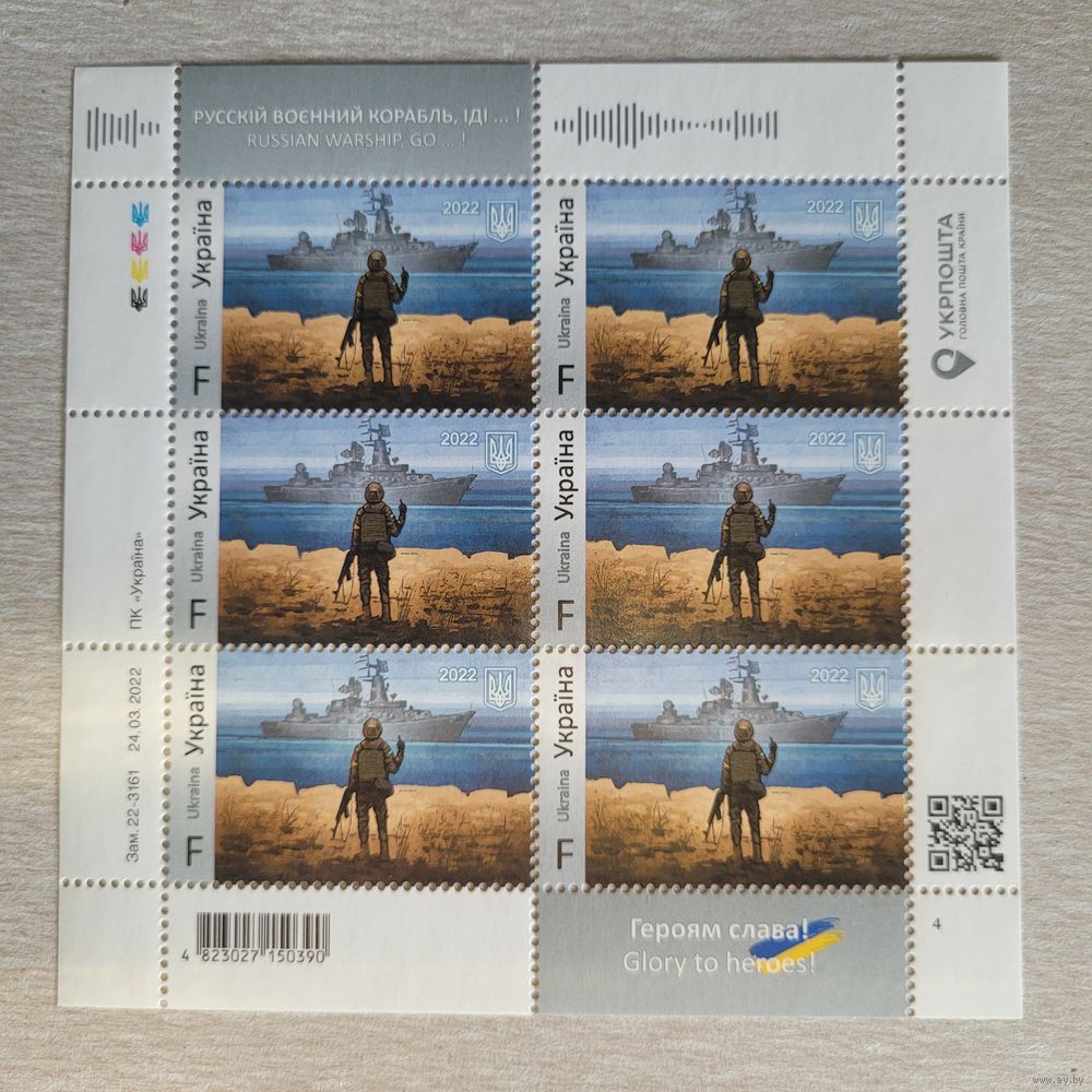 Украина. 2022. Русский Военный Корабль ЛИТЕРА F. лист. Большая редкость!