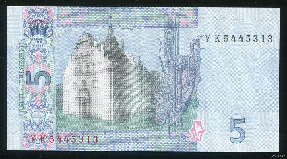 Украина 5 гривен 2015 г. P118е. Серия УК. UNC