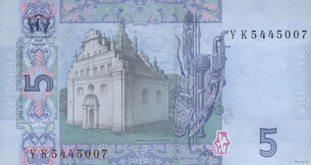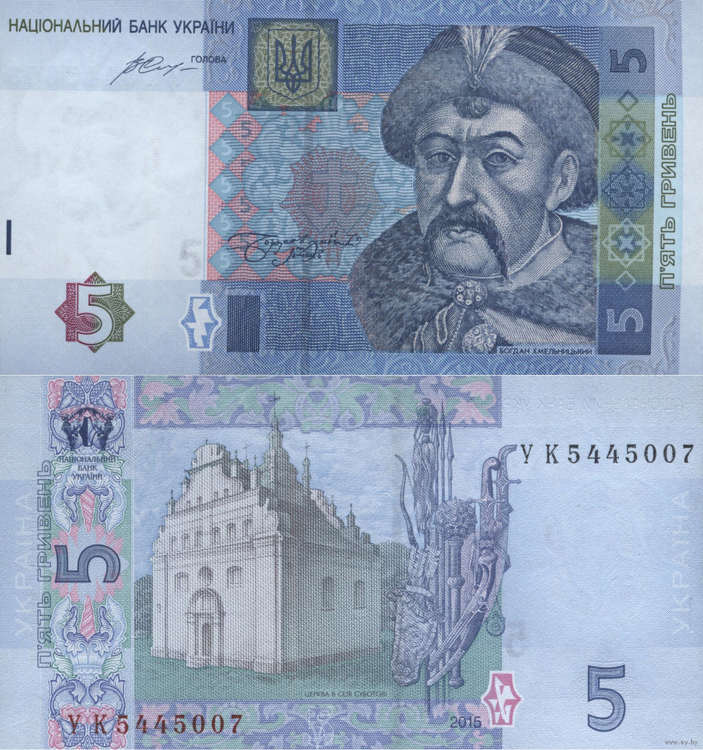 Украина 5 Гривен 2015 UNC П1-366