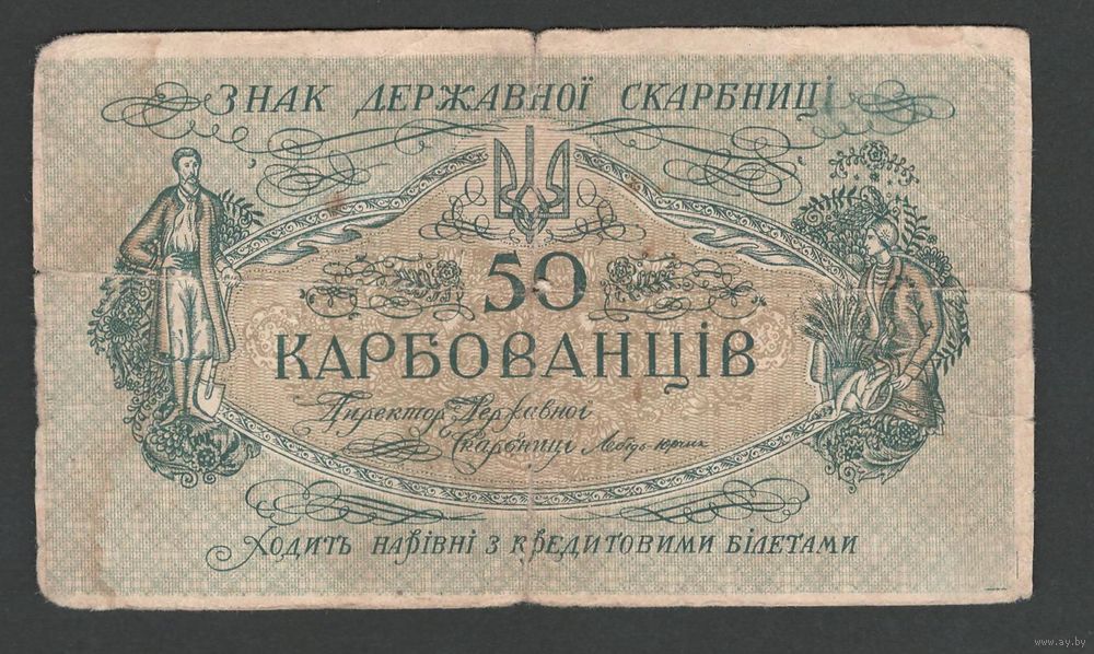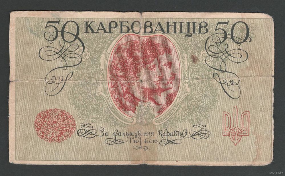 Украина 50 карбованцев 1918 года. Без серии. Тип Р-4b. Состояние VG