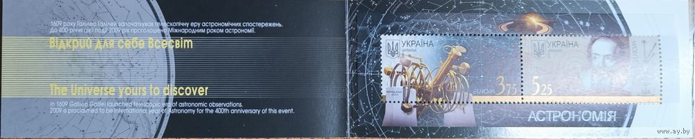 Украина. Астрономия. Буклет № 10 (№№992,993, бл № 77) (Я.П.Мулик).