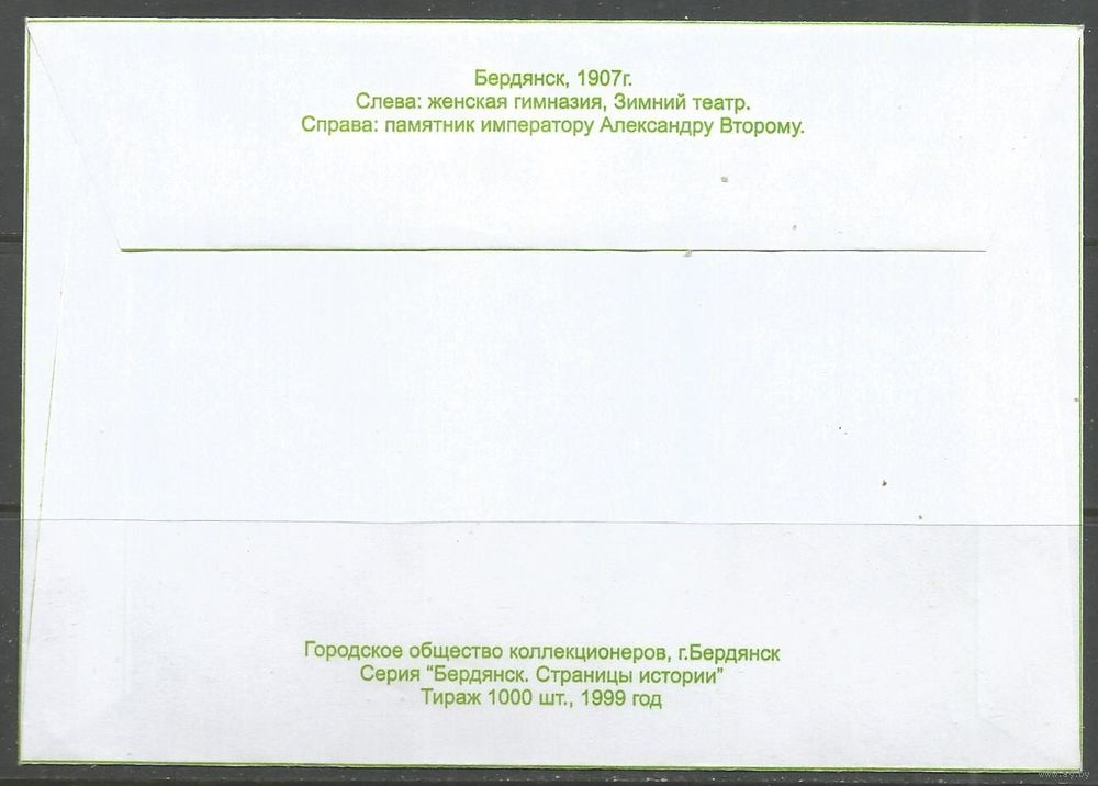 Украина. ХК г.Бердянск. Театральный проспект. 1999г. 1 конверт.