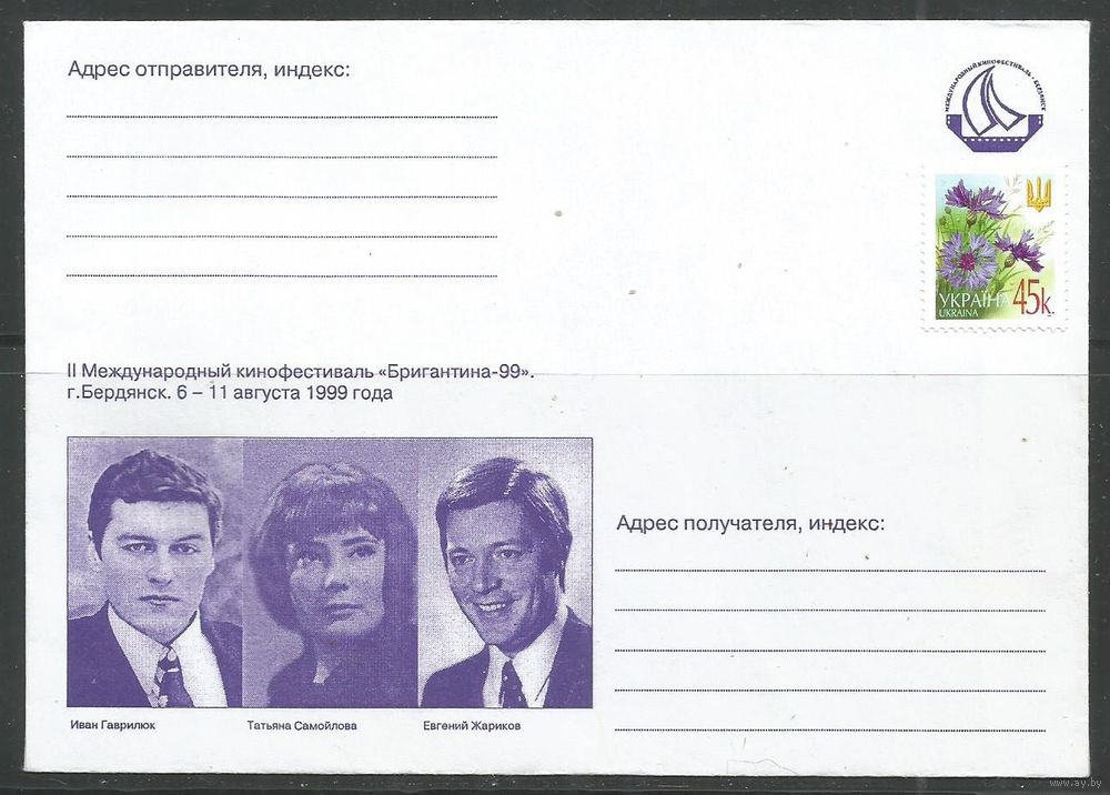 Украина. ХК Открытие кинофестиваля "Бригантина'1999". Бердянск. 1999г. 1 конверт.