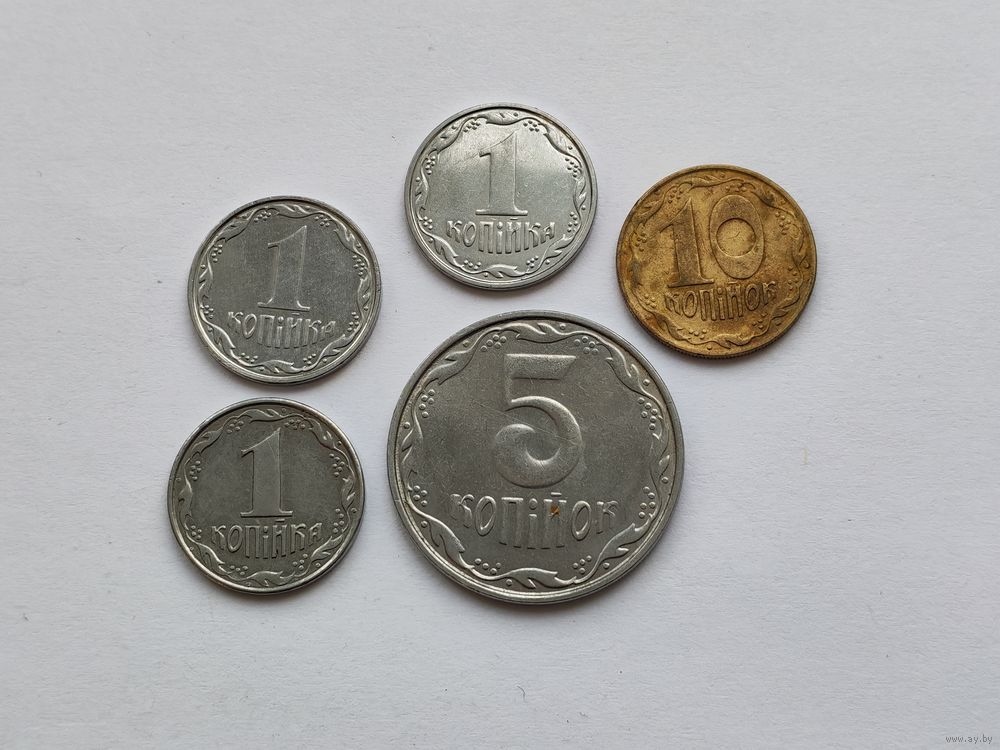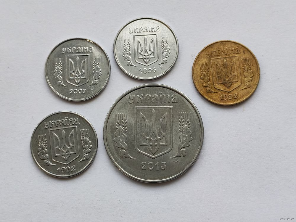 Украина набор монет 5шт: 10 копеек 1992г, 5 коп. 2013г, 1 копейка 1992г, 2006г. и 2007г.
