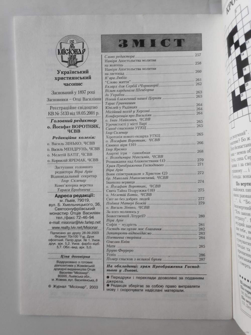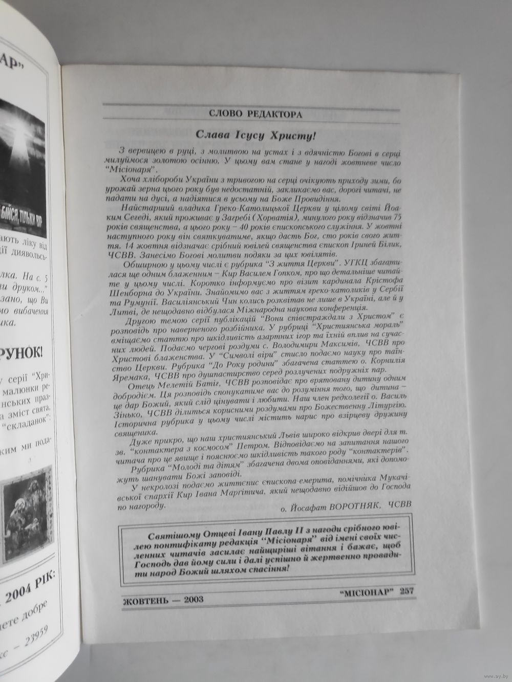 | Автор | Головны редактор о. Йосафат Воротняк, ЧСВВ |
