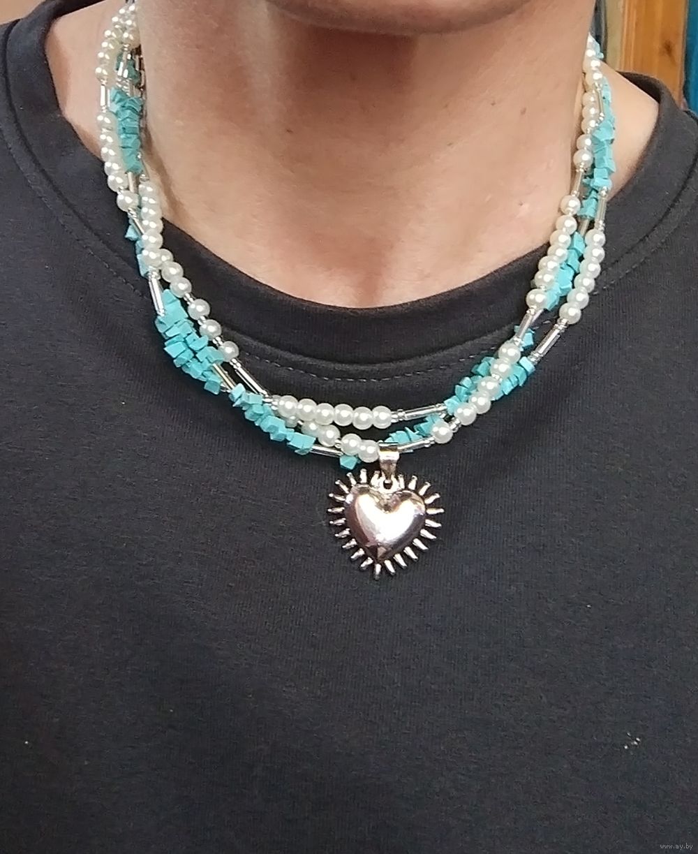 Украшение на шею искусственный жемчуг и натуральной бирюзой