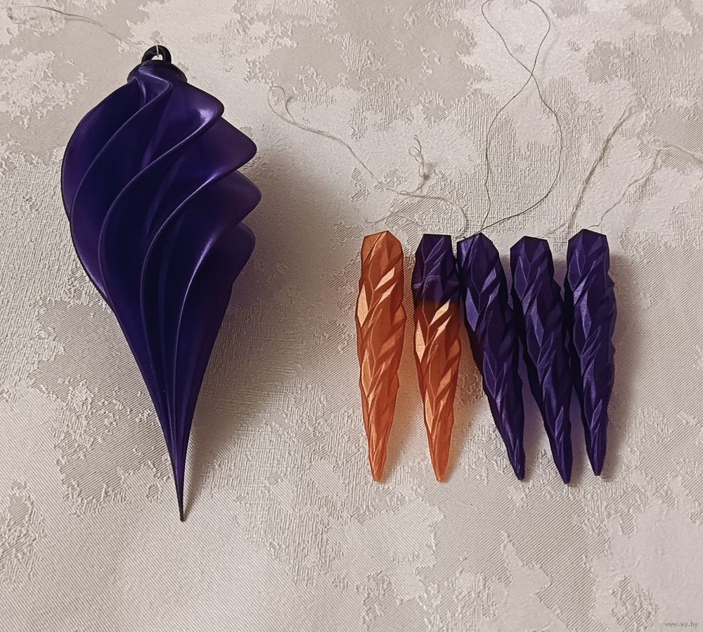 Украшения для ёлки, напечатанные на 3D-принтере в количестве 6 штук.