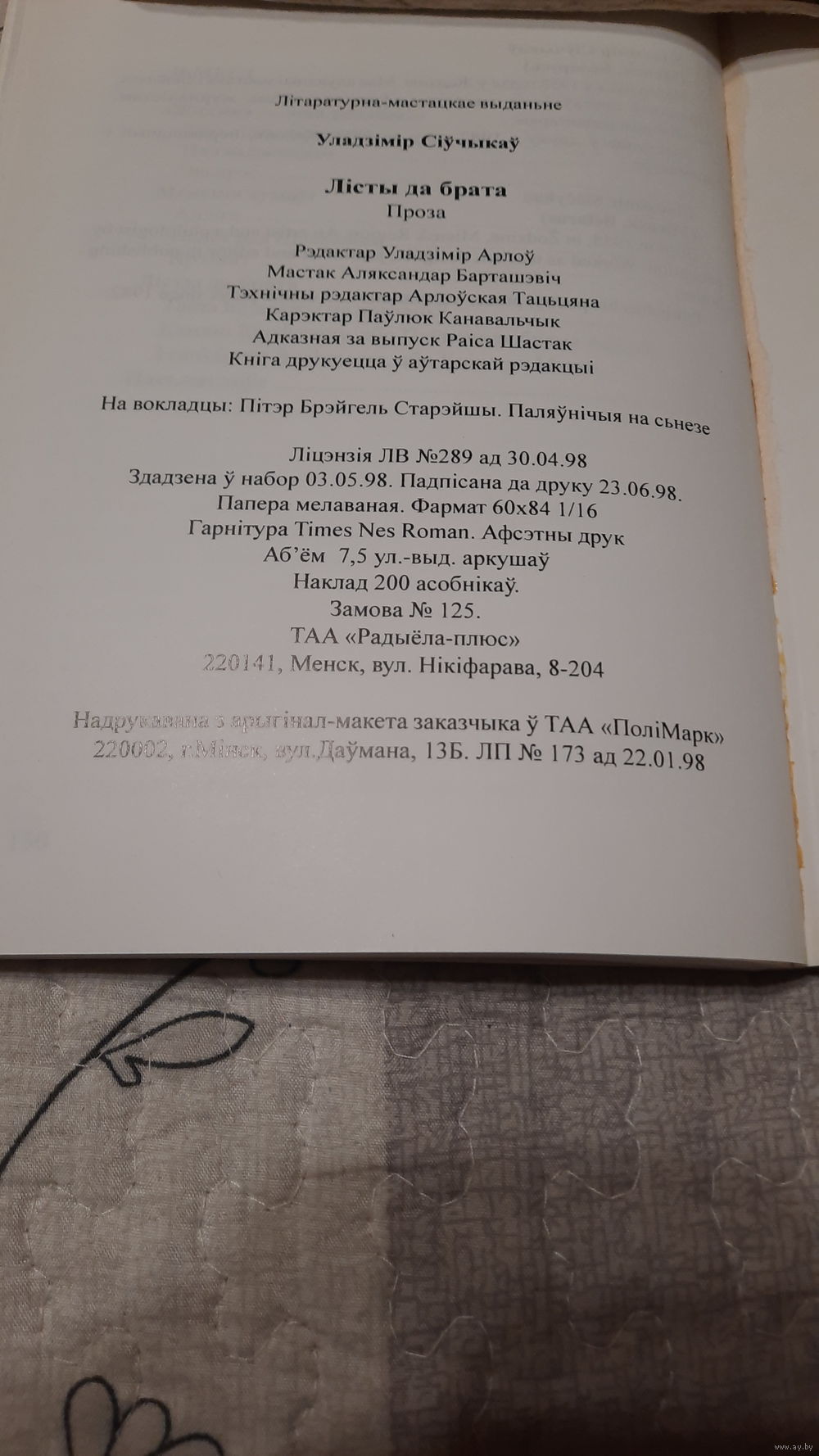 Уладзімір Сіўчыкаў Лісты да брата, Менск 1998г.