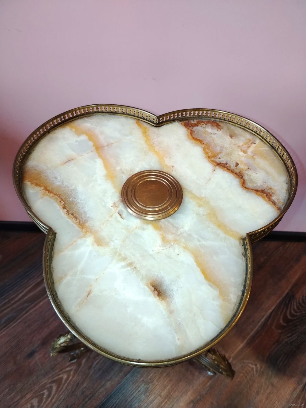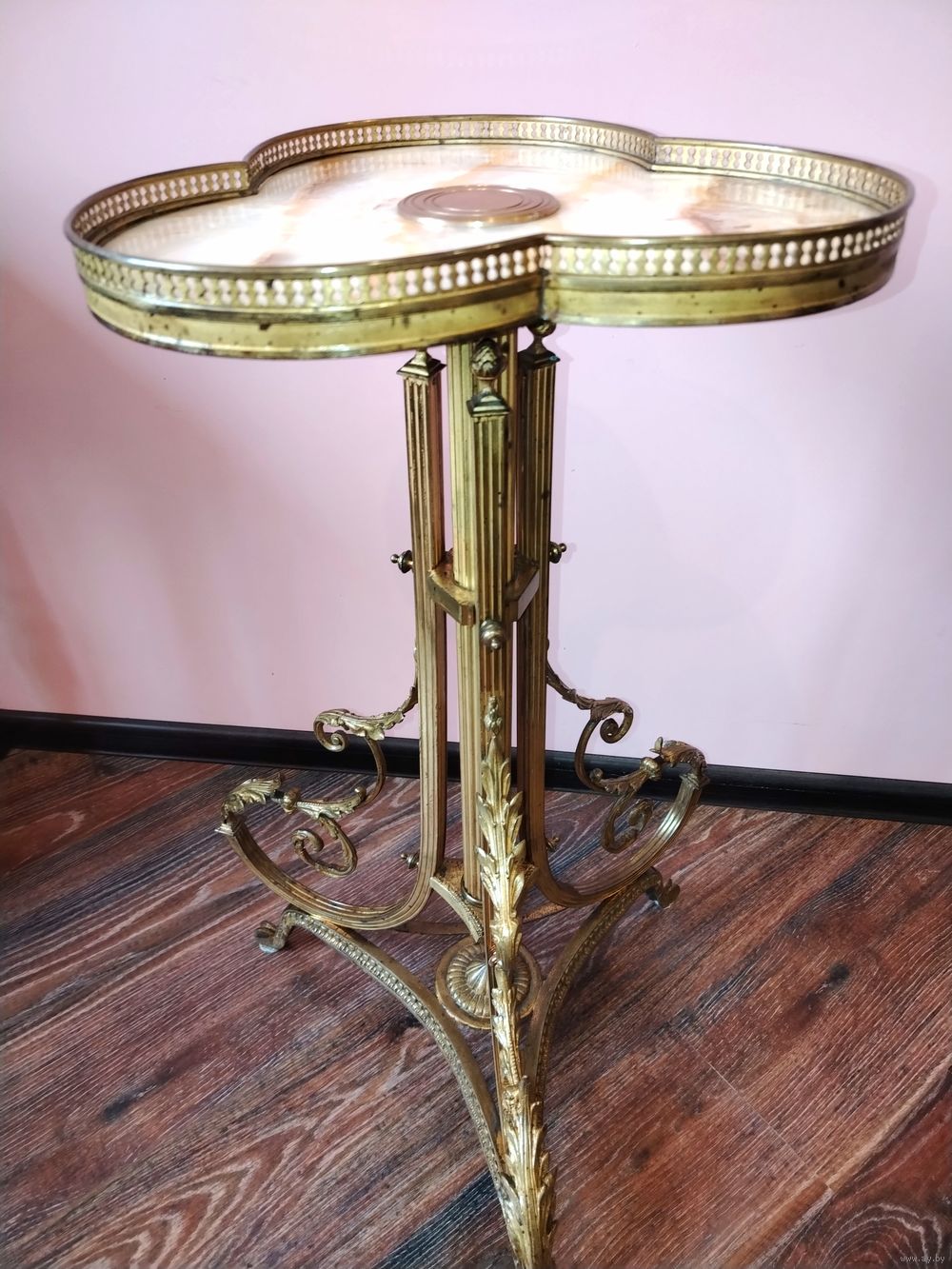 Уличные столик (подставка для цветов). Европа. Латунь, оникс. Высота 76см диаметр верхней части 37 см. нижней части диаметр 50см.