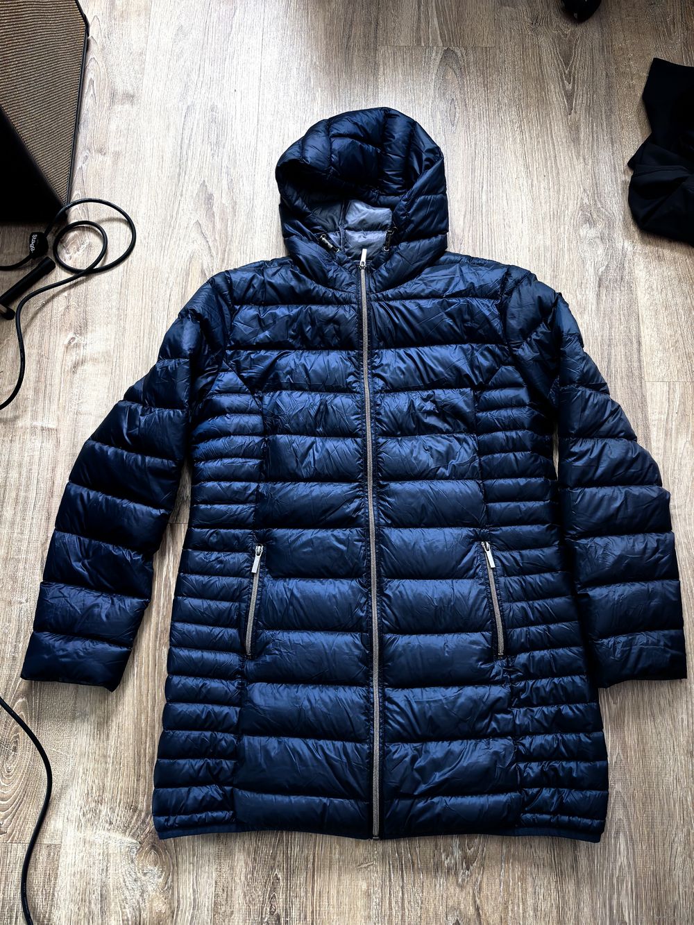 Удлиненная куртка на пуху на демисезон.