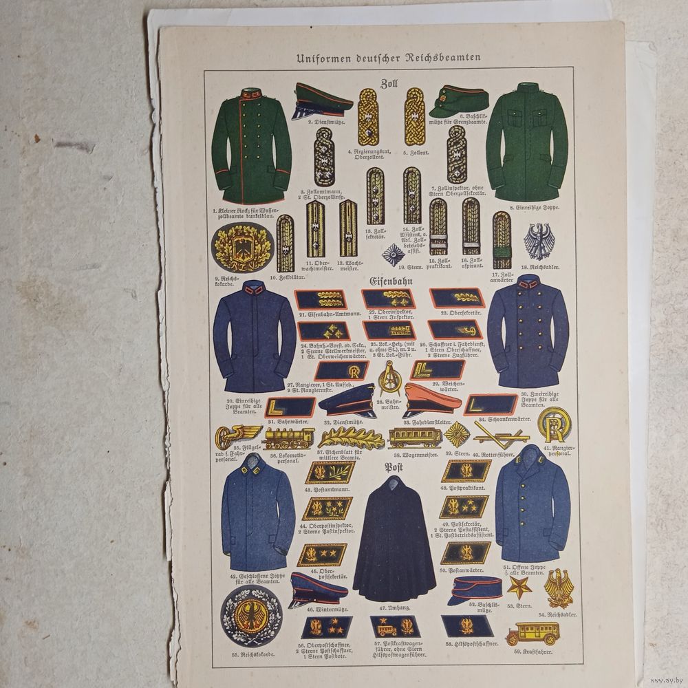 Униформа. Литография Германия. Гравюра конец 19века 24х16см. РАСПРОДАЖА КОЛЛЕКЦИИ.