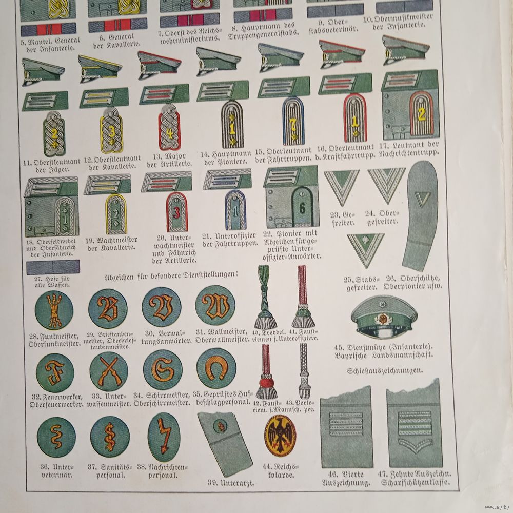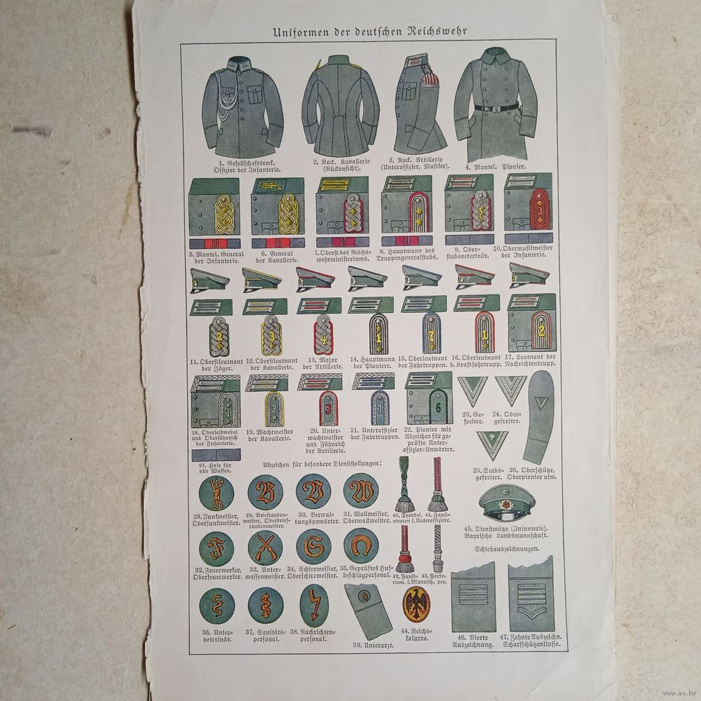 Униформа. Литография Германия. Гравюра нач. 20в. 24х16см. РАСПРОДАЖА КОЛЛЕКЦИИ.