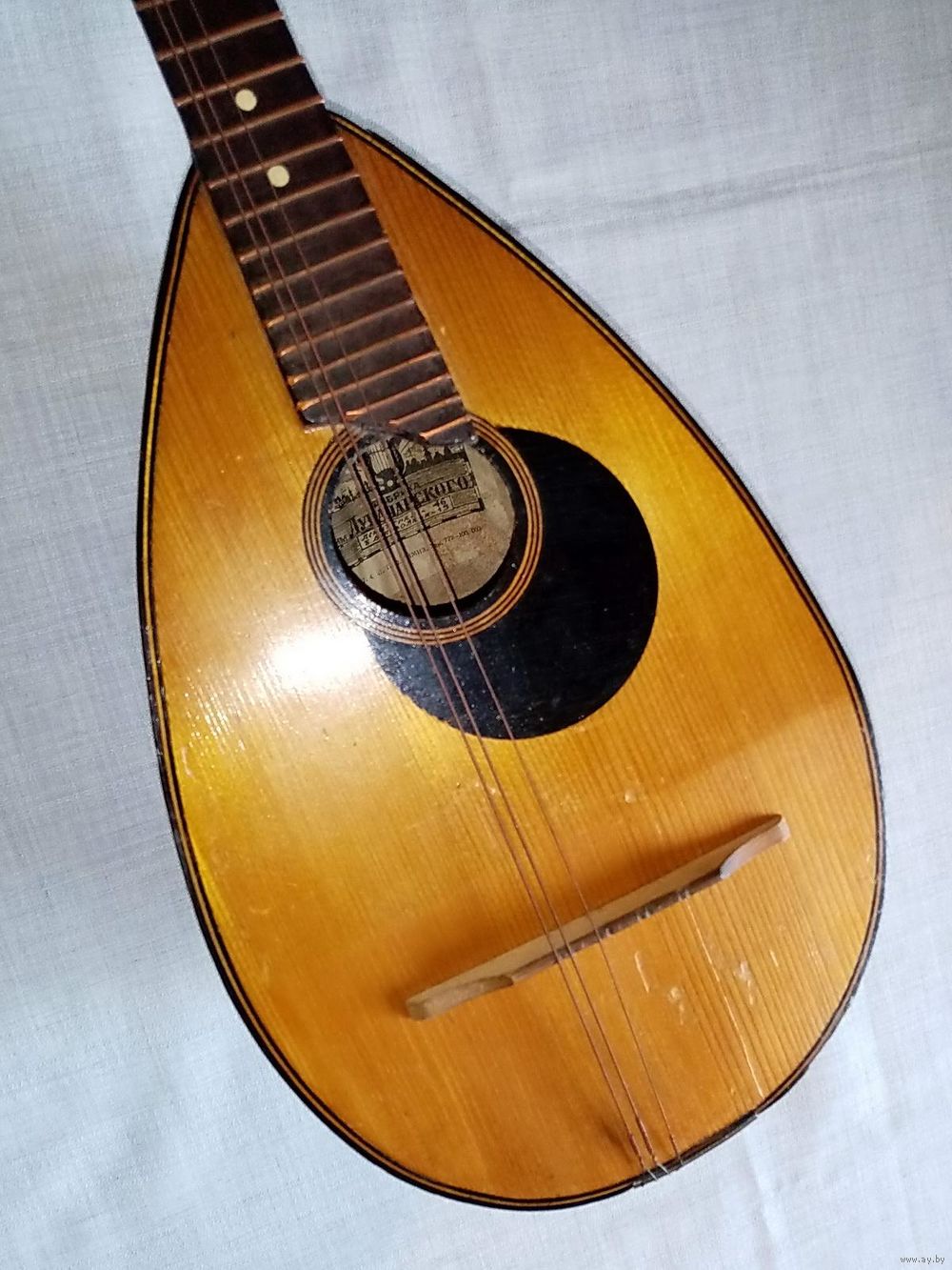 | На фото, корпус рассохся, утрачен 1 лад, склейка грифа. Комплект струн прилагается! Общее впечатление - позитивное! Для фотосессий, киносъёмок, в коллекцию, музей или по назначению - играть !) | |