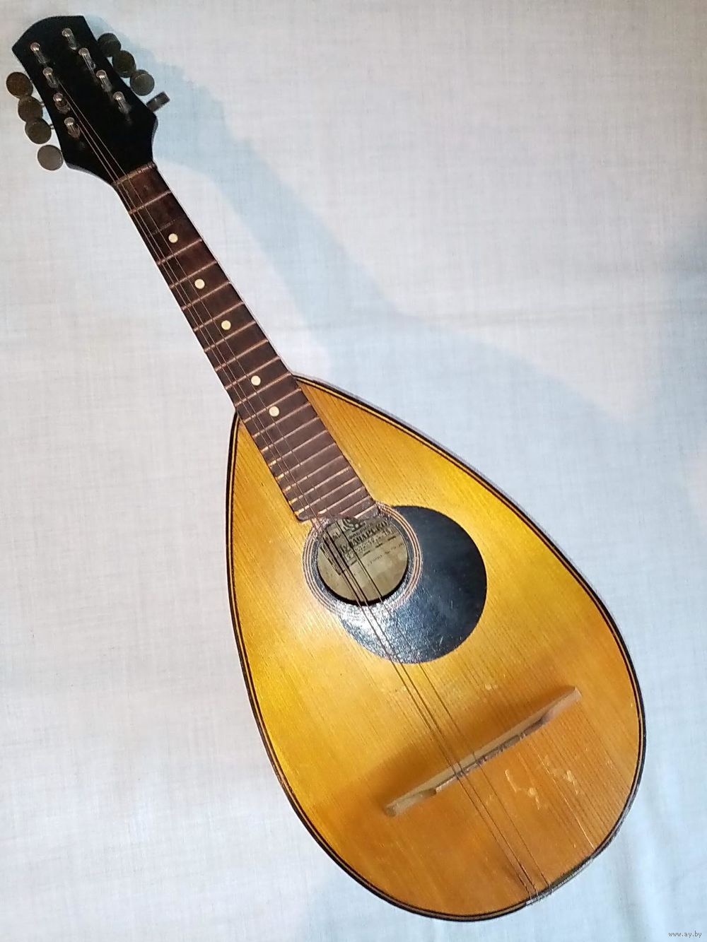 | На фото, корпус рассохся, утрачен 1 лад, склейка грифа. Комплект струн прилагается! Общее впечатление - позитивное! Для фотосессий, киносъёмок, в коллекцию, музей или по назначению - играть !) | |
