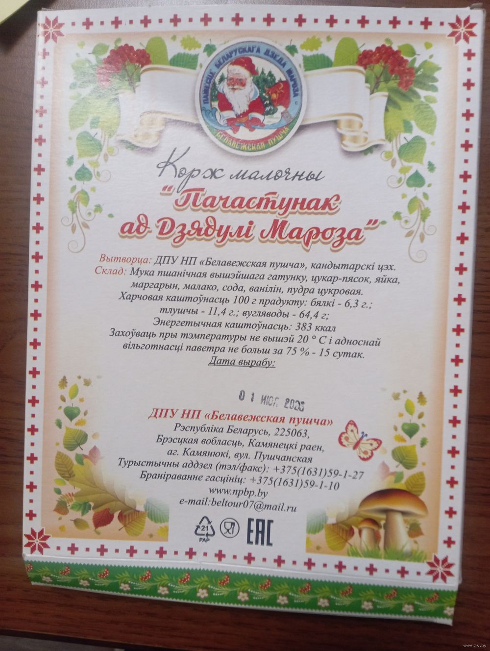 упаковка кондитерского изделия — молочного коржа «Пачастунак ад Дзядулі Мароза» (Угощение от Деда Мороза).