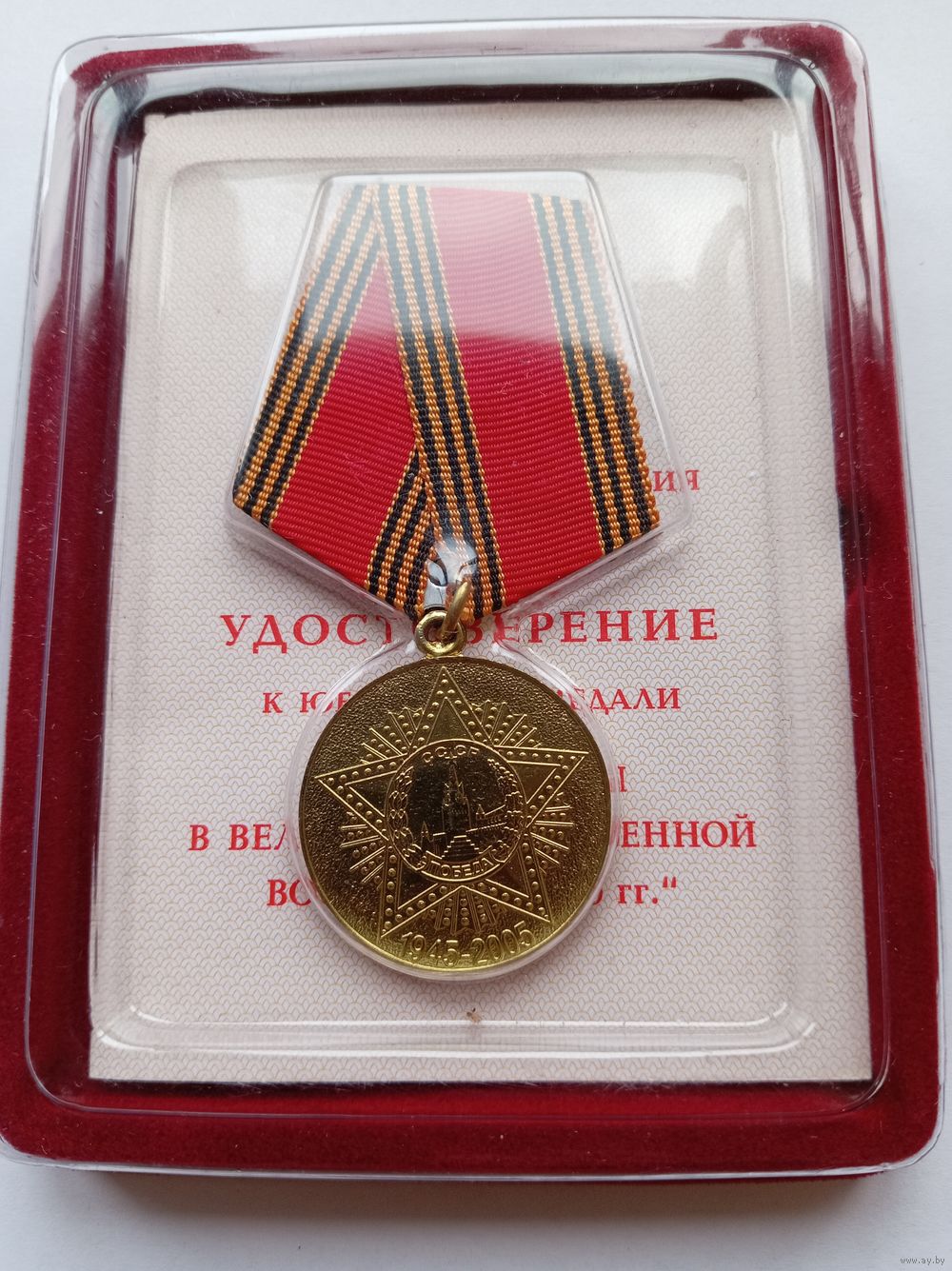Награда укладывается поверх удостоверения и закрепляется в крышке.