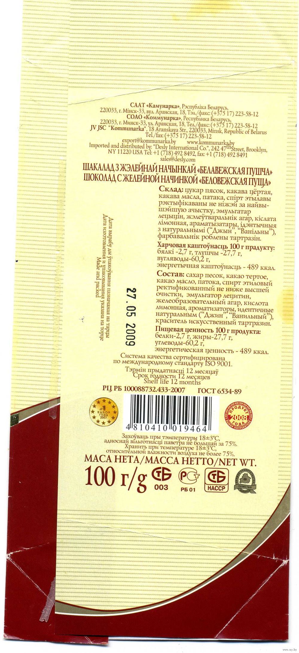 Упаковка от шоколада Беловежская пуща Коммунарка 2009