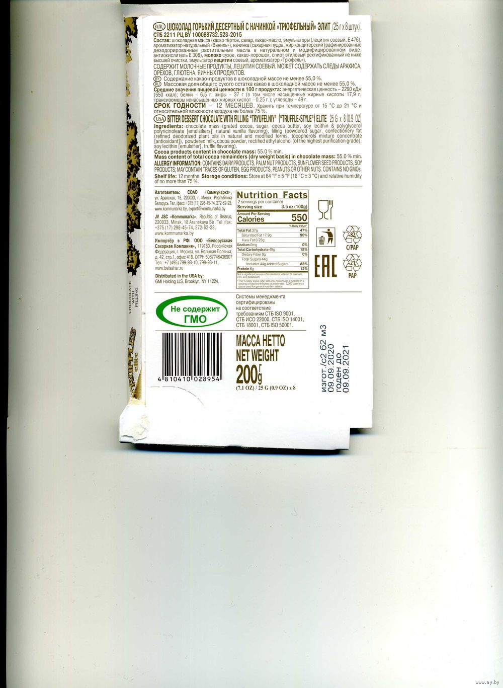Упаковка от шоколада Коммунарка Трюфельный 2020-21