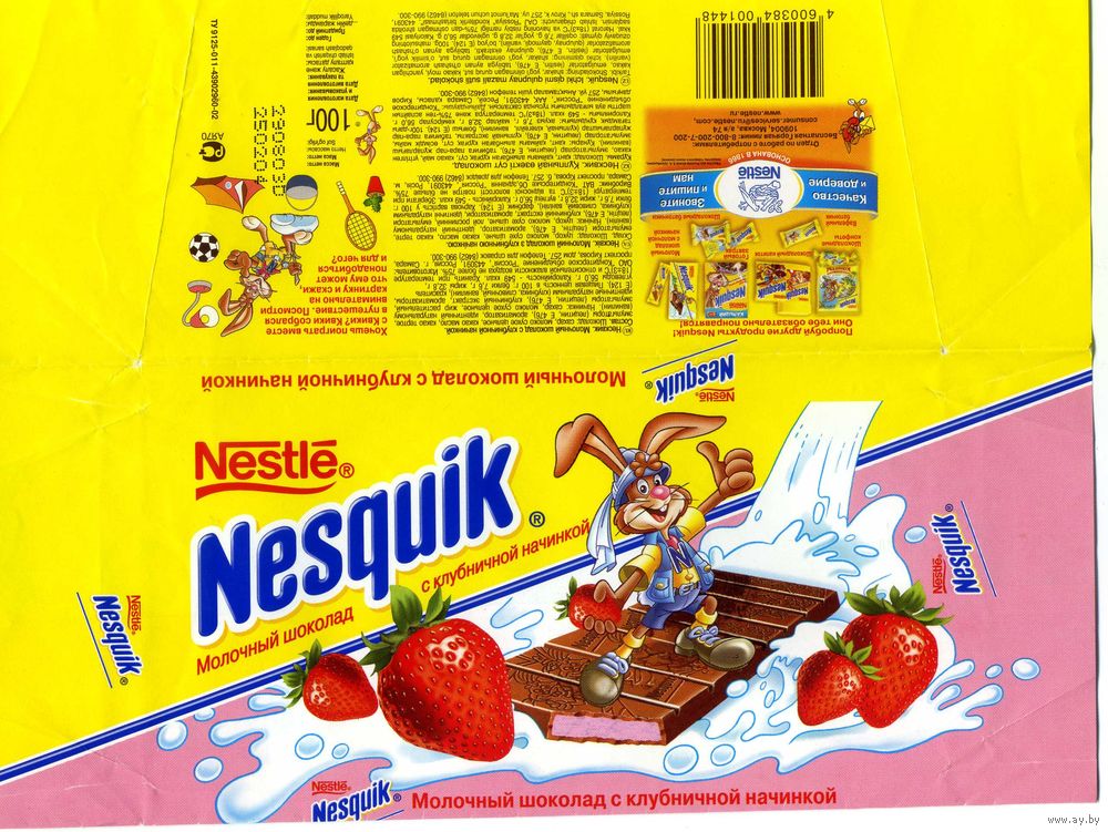 Упаковка от шоколада Nesquik Молочный с клубничной начинкой 2003