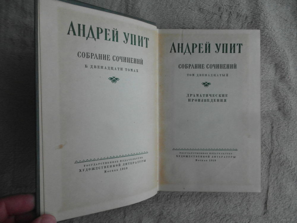 Упит Андрей. Собрание сочинений в 12 томах. Том 12. Драматические произведения ("Один и многие", "Купальщица Сусанна", "Полет чайки" и др.). Пер. с лат. М.: ГИХЛ, 1959 г.