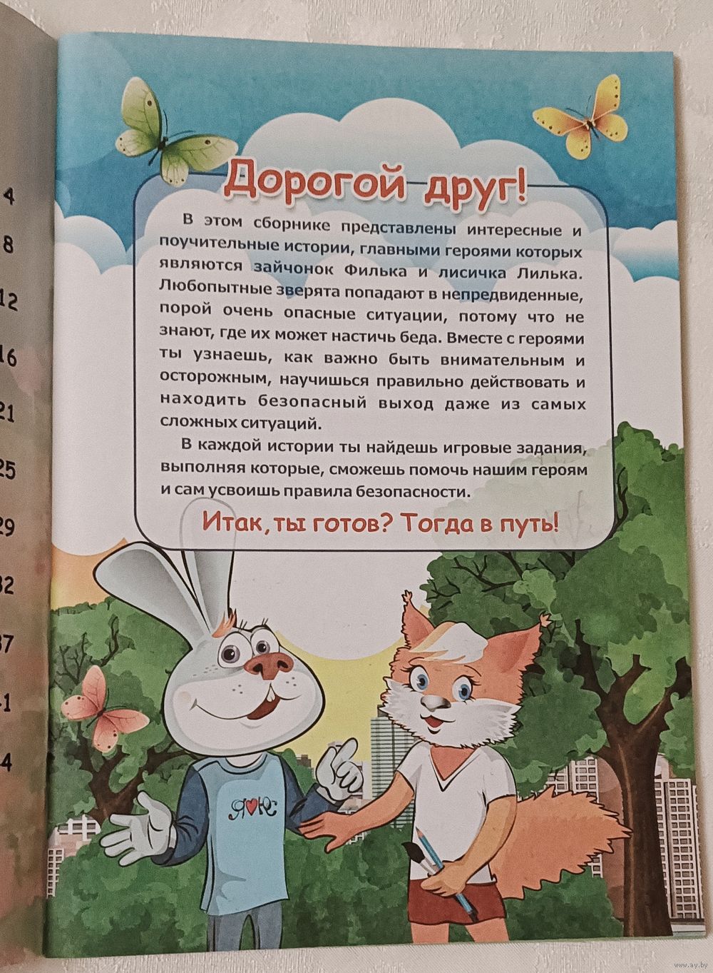 В этом сборнике представлены интересные и поучительные истории, главными героями которых являются зайчонок Филька и лисичка Лилька. Любопытные зверята попадают в непредвиденные, порой очень опасные ситуации, потому что не знают, где их может настичь беда. Вместе с героями ты узнаешь, как важно быть внимательным и осторожным, научишься правильно действовать и находить безопасный выход даже из самых сложных ситуаций.