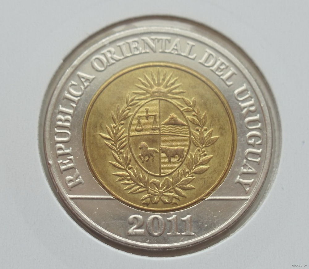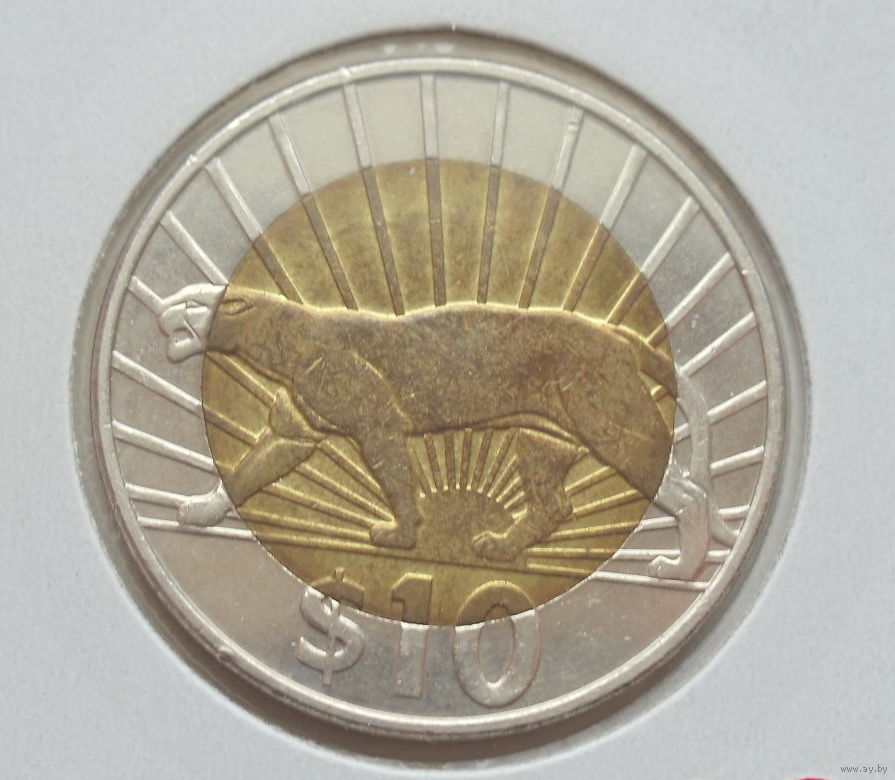 Уругвай 10 песо 2011 год пантера биметалл состояние холдер
