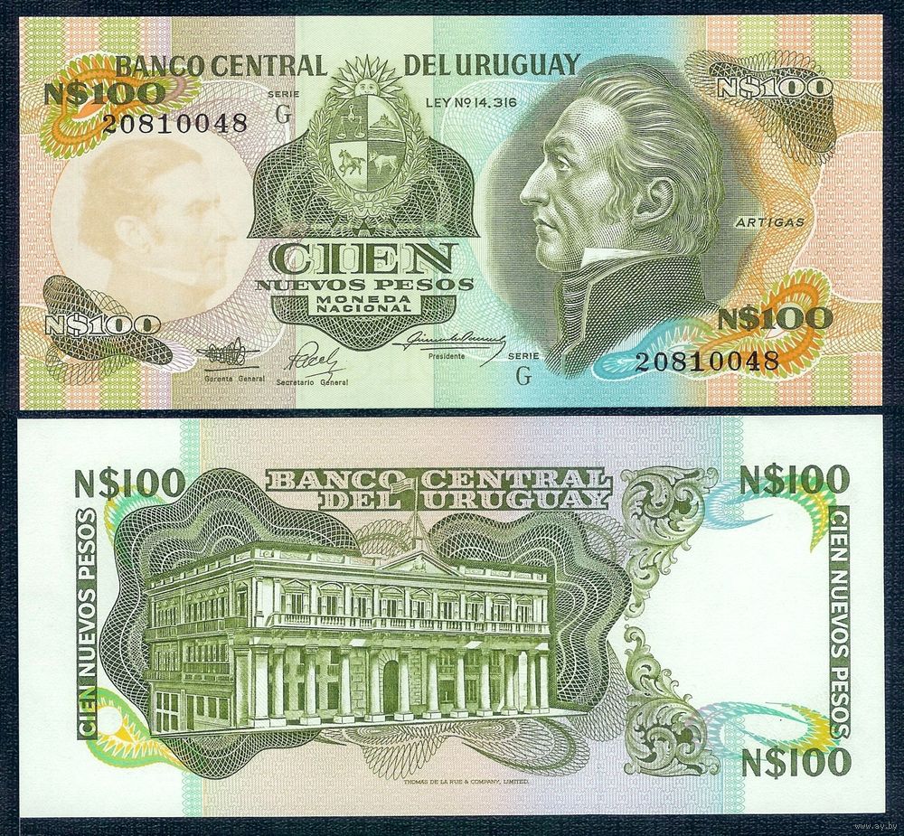 Уругвай 100 новых песо 1987 год, Р62А, UNC