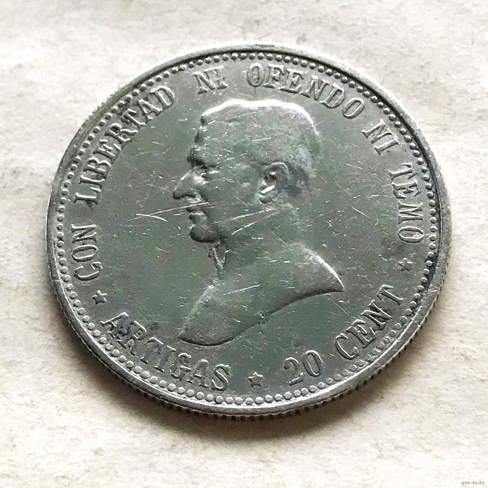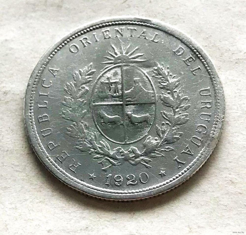Уругвай 20 сентесимо 1920 - нечастое серебро, один год чекана!