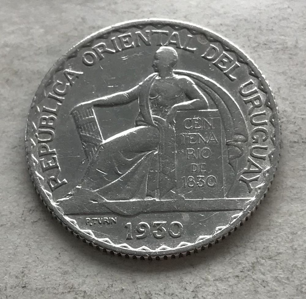 Уругвай 20 сентесимо 1930 - 100 лет Конституции - нечастое серебро 0,800!