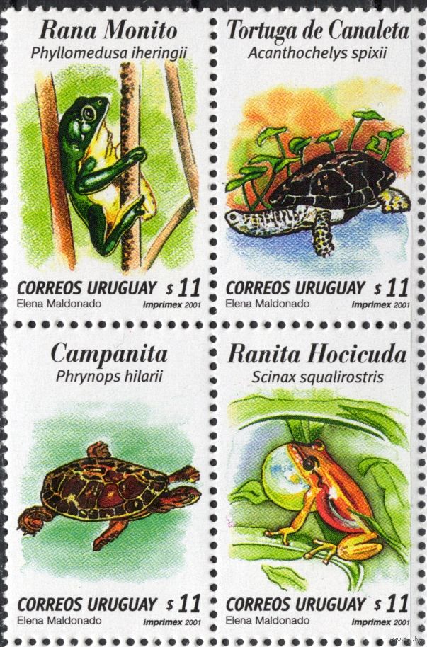 Уругвай 2001. Фауна. Земноводные. 4 марки квартблок (2581)