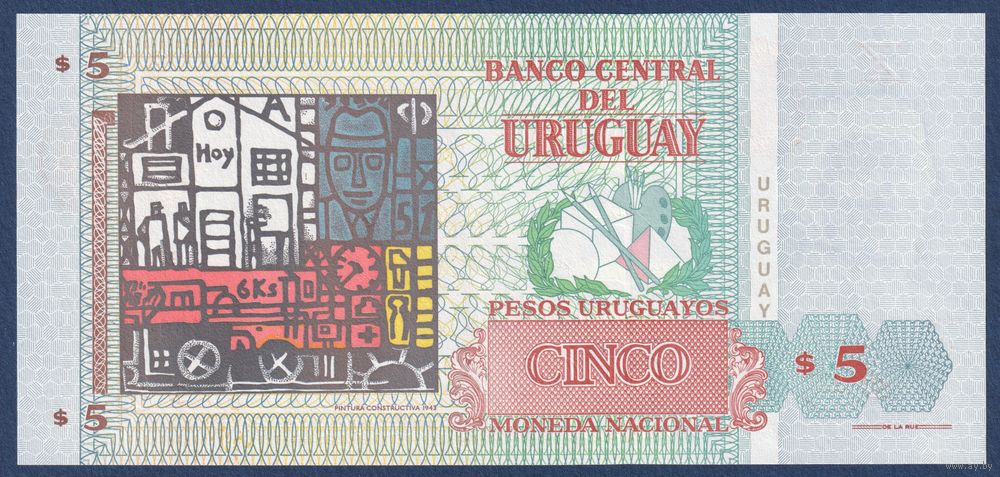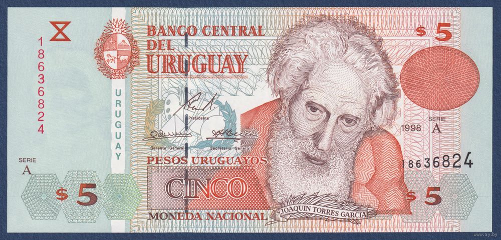 Уругвай, 5 песо 1998 г., P-80 (A, художник Хоакин Торрес Гарсия), UNC