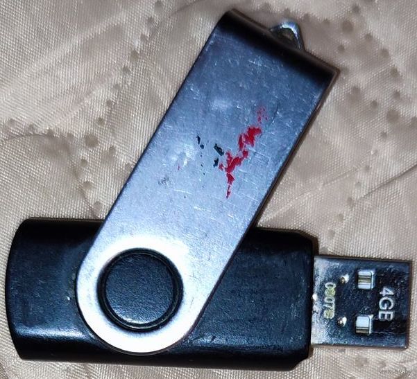 Флешка на 4 гига (производитель стёрся). Комп её опознаёт на полупрозрачном фоне, но не войти, не отформатировать невозможно (фото №6-7). Ни одна из программ по восстановлению доступа её так же не распознаёт. Есть вариант, что внутри отпаялись контакты