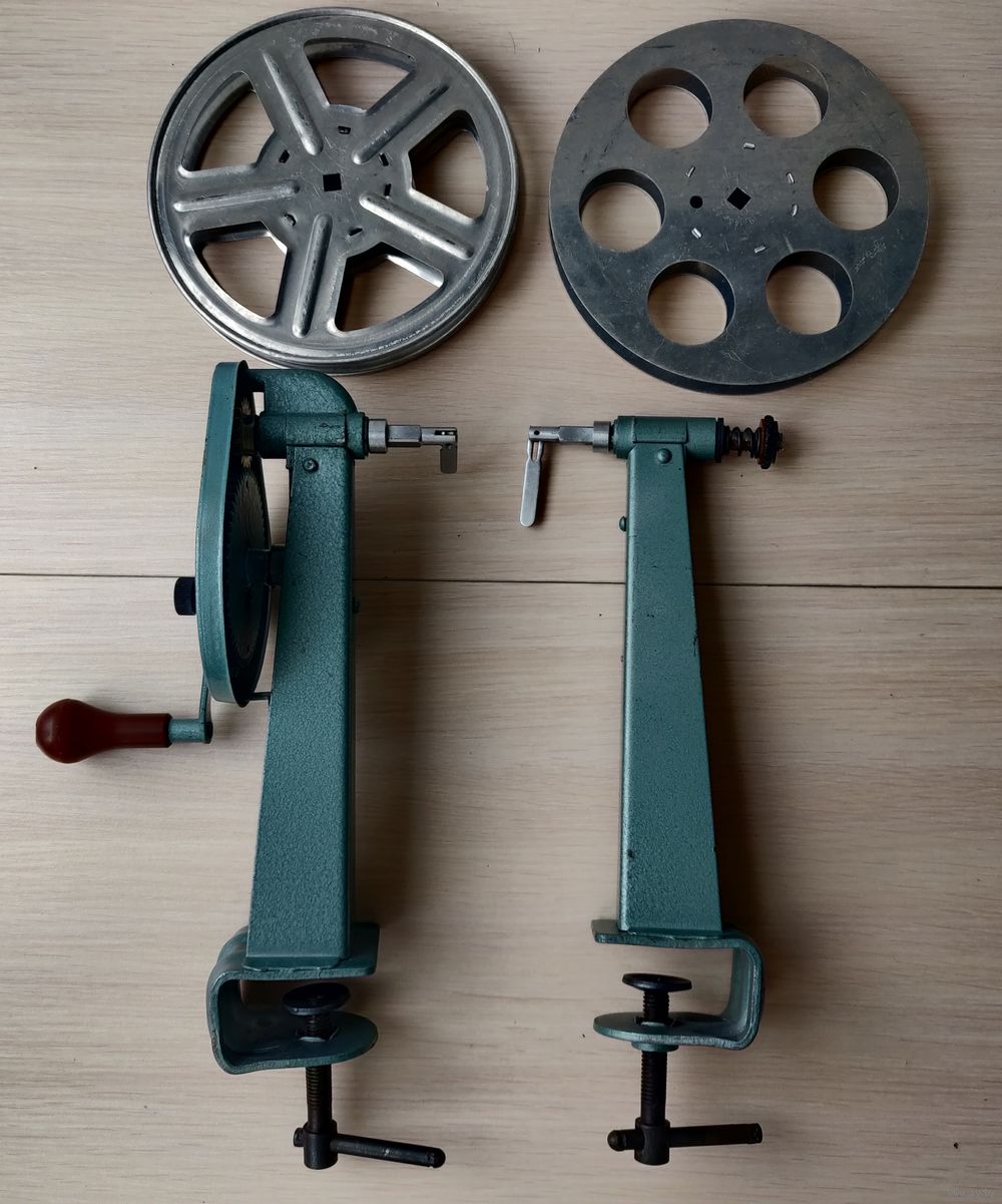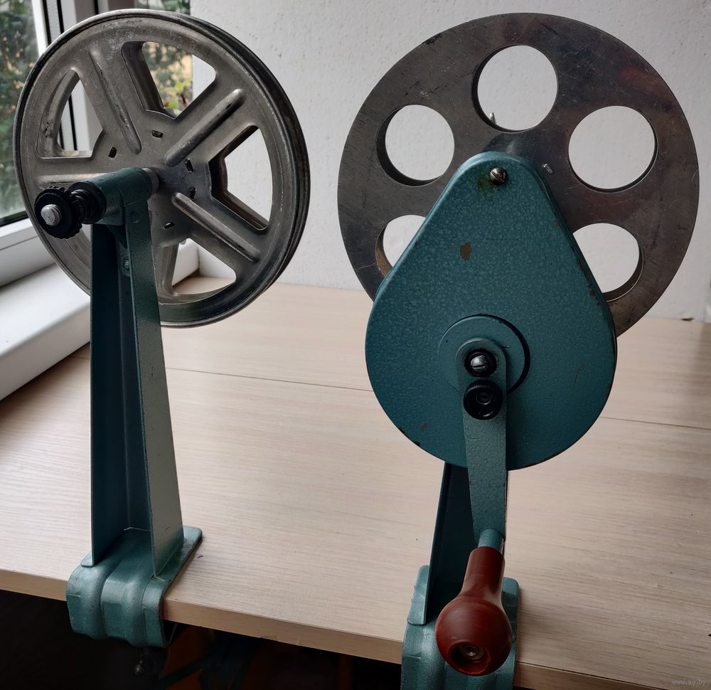 Винтажное советское устройство для намотки, перемотки, смотки, пленки, кинопленки в комплекте с катушками для пленки 16 мм.