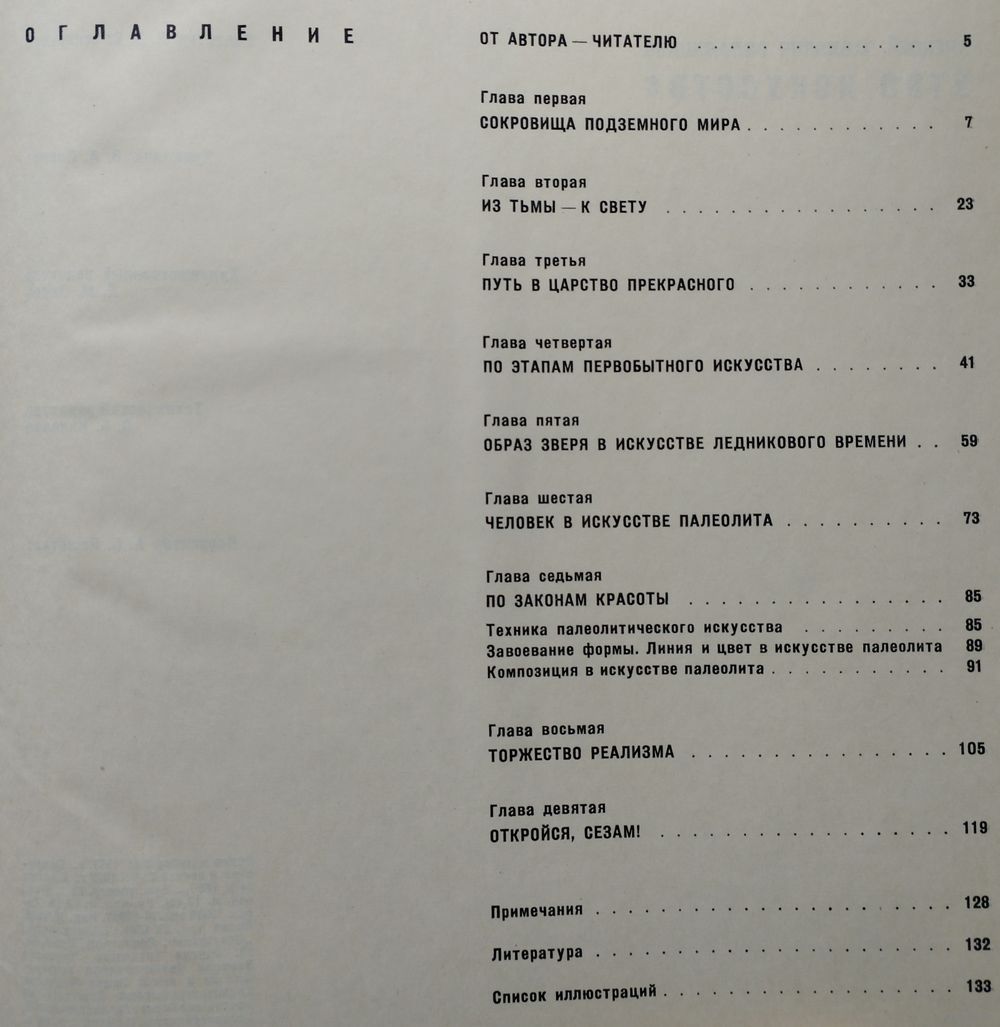 Большой энциклопедический формат. Тираж 10000 экз. 136 стр. Книга эта посвящена художественному творчеству палеолитического человека, древнейшему искусству на земле. В ней говорится об его истоках, о первых на нашей планете художниках, живших десятки тысяч лет тому назад. О том, как перед людьми нашего века внезапно открылся неведомый огромный мир, скрытый в темной глубине пещер, мир до сих пор неисчерпанный и удивительный, полный загадок и тайн...