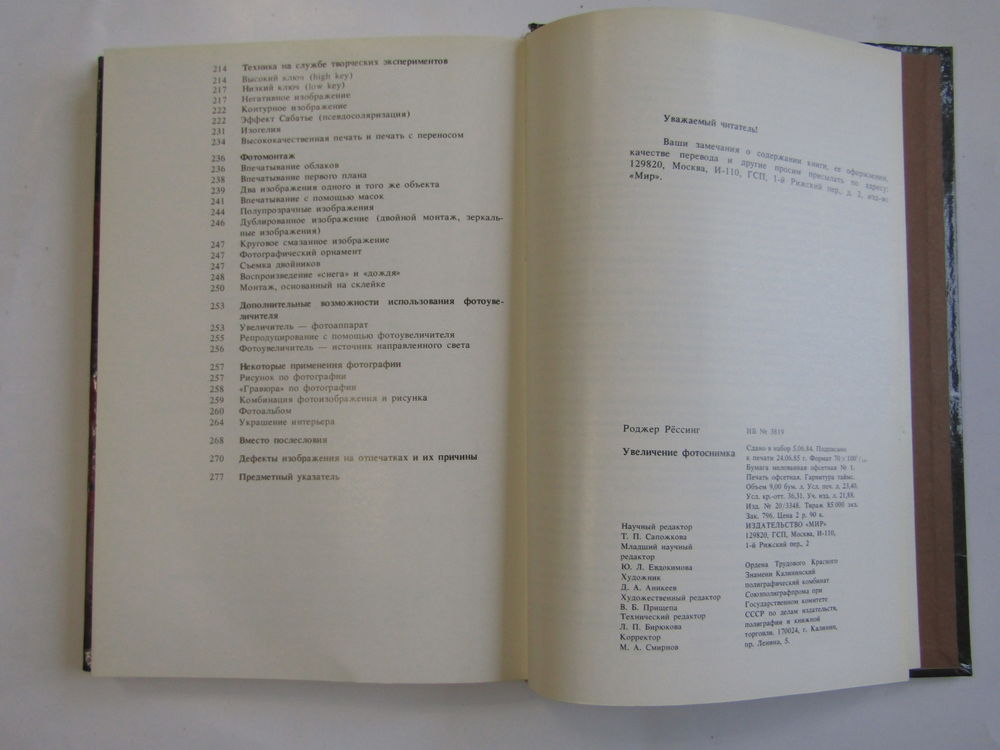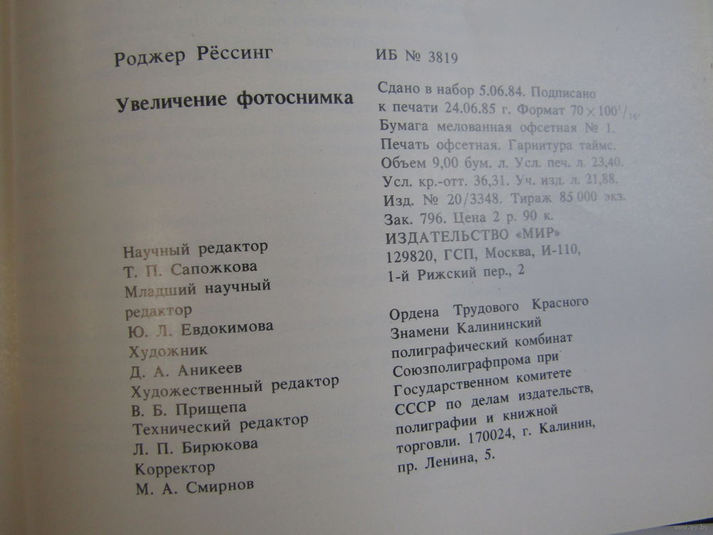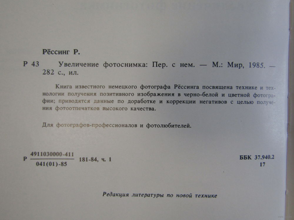 "Увеличение фотоснимка". Рёссинг Р. Книга. Фотоаппарат. Кинокамера. Фотография. СССР 1988 г.и. м