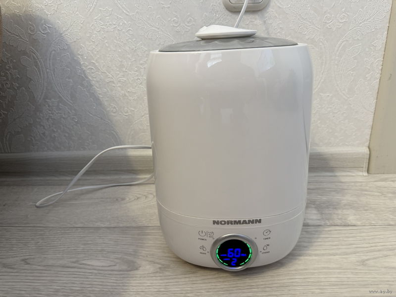 " Увлажнитель воздуха - Normann AUH-032 ". Ультразвуковой, обслуживаемая площадь 30 м2, объем резервуара для воды 4.6л, производительность увлажнения - 350 мл/ч, регулировка направления пара, сенсорное управление, индикации - влажности и температуры и отсутствия воды и уровня выхода пара, таймер, ночной режим, разноцветная подсветка, ВСЁ работает, б/у, в отличном состоянии.
