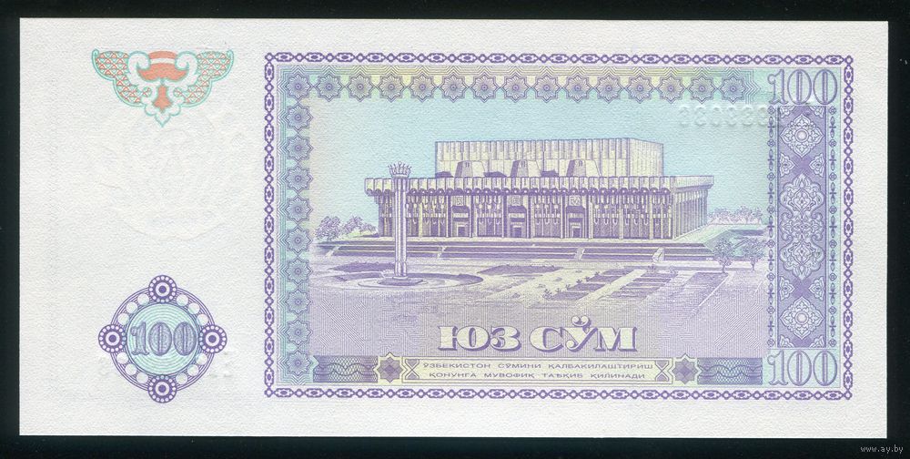 Узбекистан. 100 Сум 1994 г. P79. Серия EA. UNC
