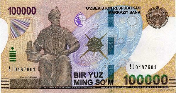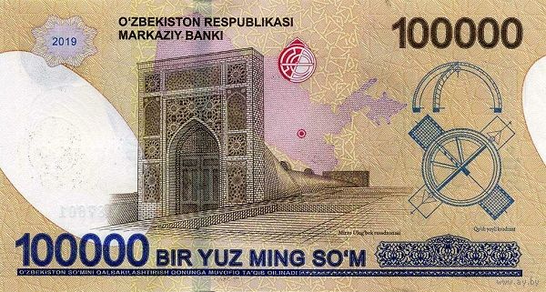 Узбекистан 100000 сом образца 2019 года UNC pw86