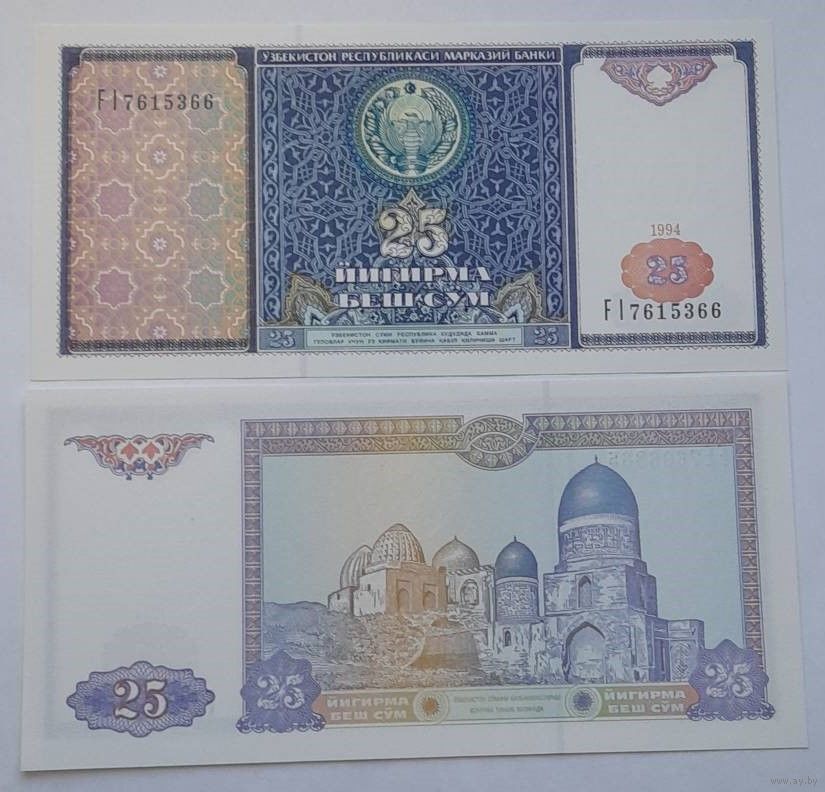 Узбекистан 25 сум 1994 года UNC