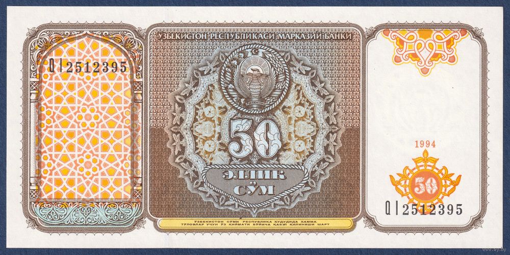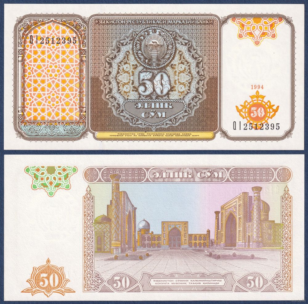 Узбекистан, 50 сум 1994 г, P-78 (PF, площадь Регистан в Самарканде), UNC