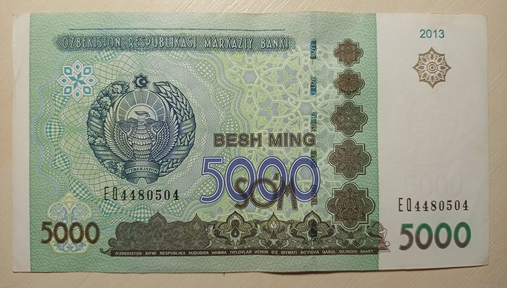 Узбекистан. 5000 сум 2013 года, серия EQ