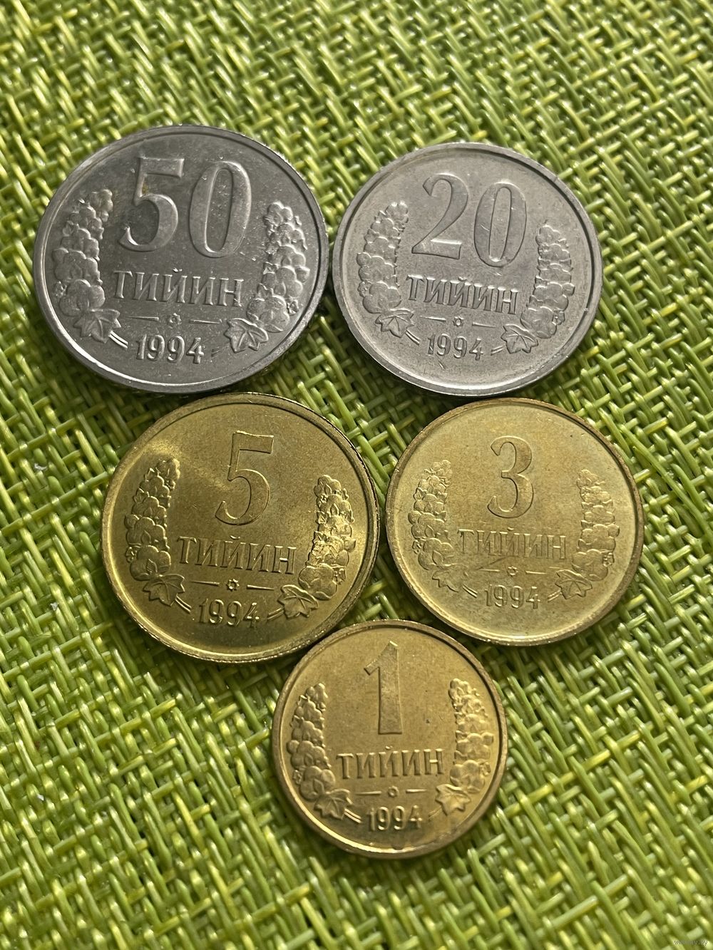 УЗБЕКИСТАН НАБОР 1-10-20-50-(3 + 5) ТИЙИН 1994 ГОД МАЛЕНЬКИЕ ЦИФРЫ , РЕДКИЕ