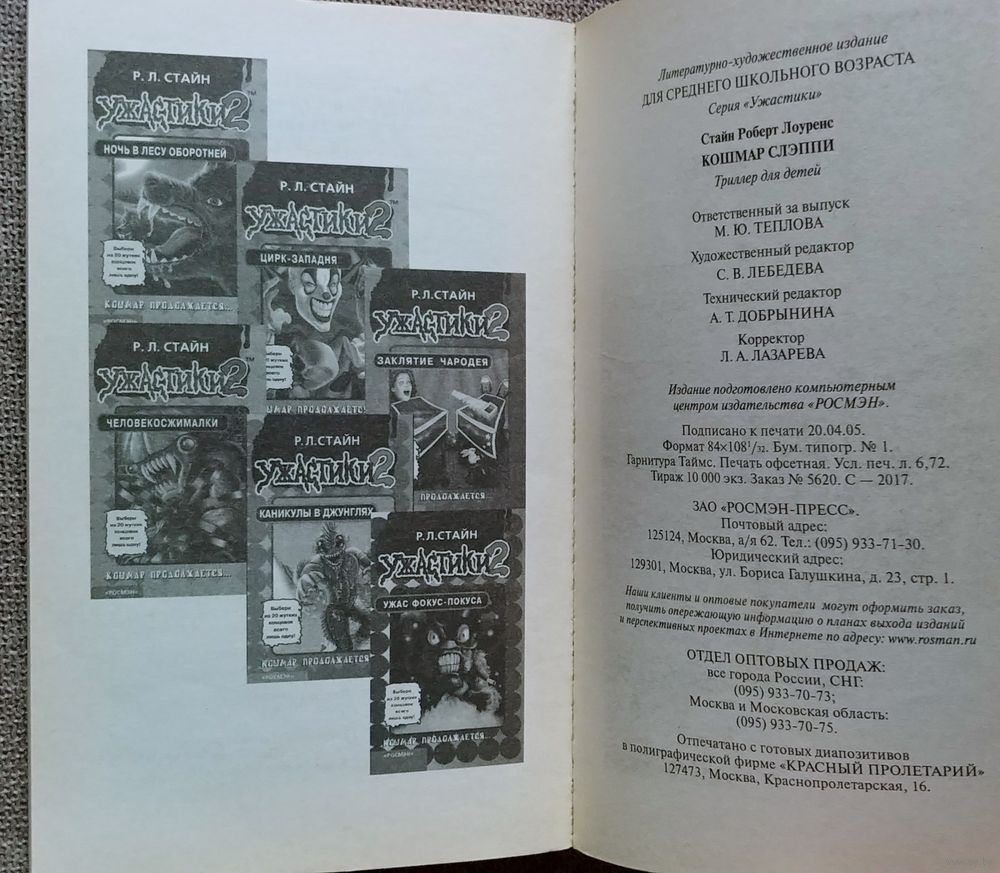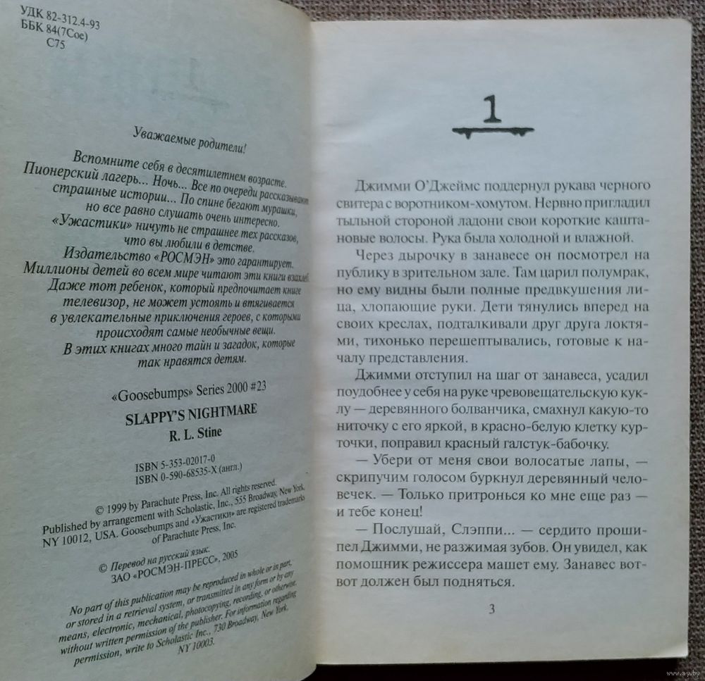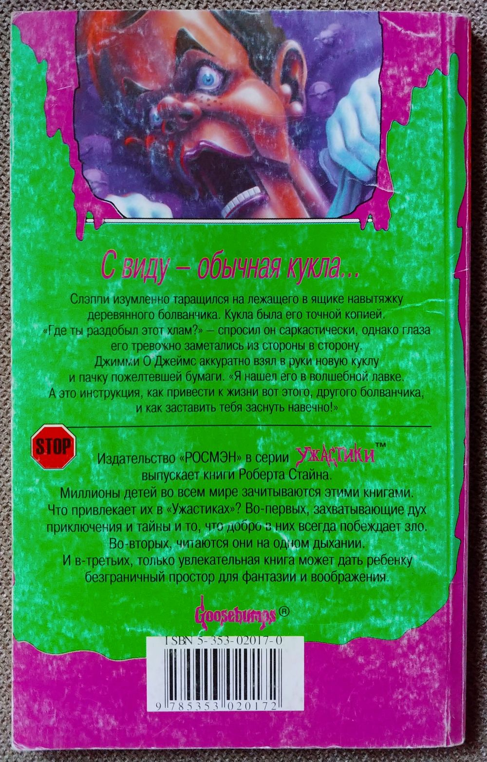 Кошмар Слэппи - предпоследняя книга из знаменитой серии "Ужастики" под номером 62, выпущенная издательством РОСМЭН.
