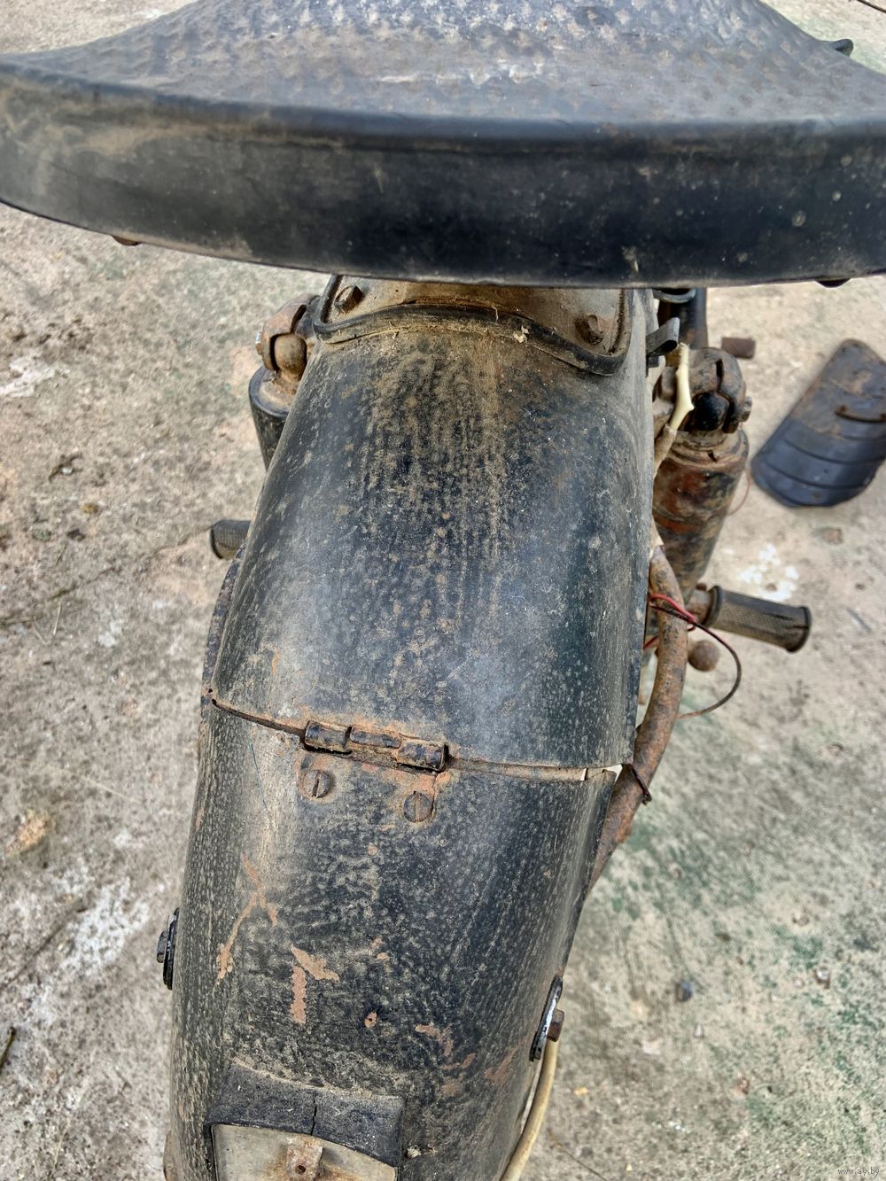| переднее колесо ещё на родной советской живой покрышке и камере. Родные заслонки и иглы для карбюраторов. | |