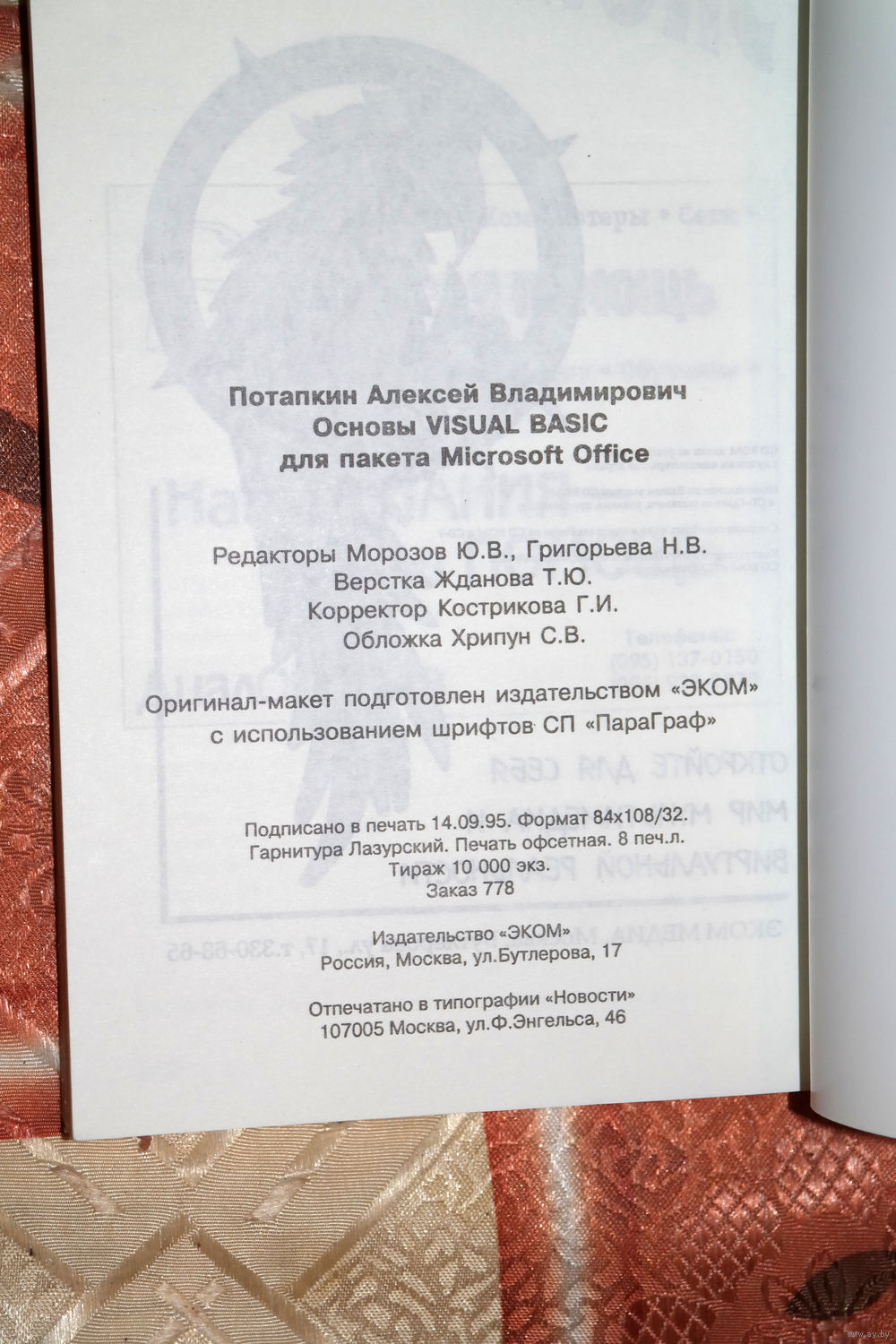 Данные для связи с продавцом: e-mail продавца и его телефон будут предоставлены после покупки лота - в Вашем разделе сайта ay by "мои покупки" и на ваш e-mail.