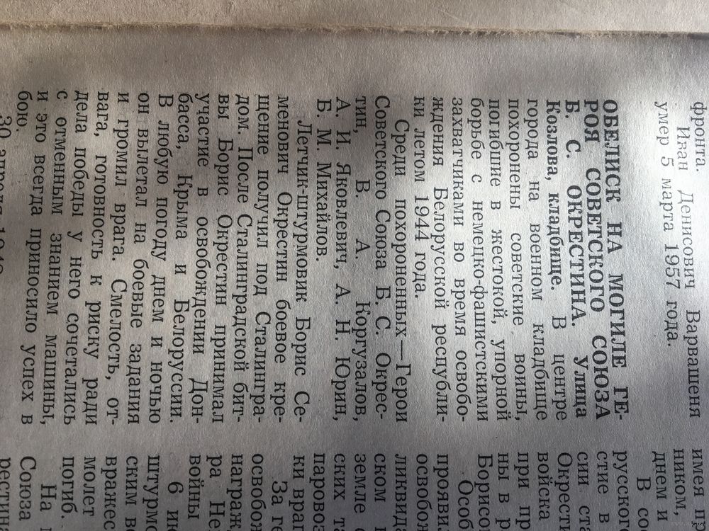 | каждое такое место представлено фото-они занимают треть книги. например о улице Окрестина,названной в честь погибшего пилота-героя Советского Союза! захоронен сам на Козлова. | |