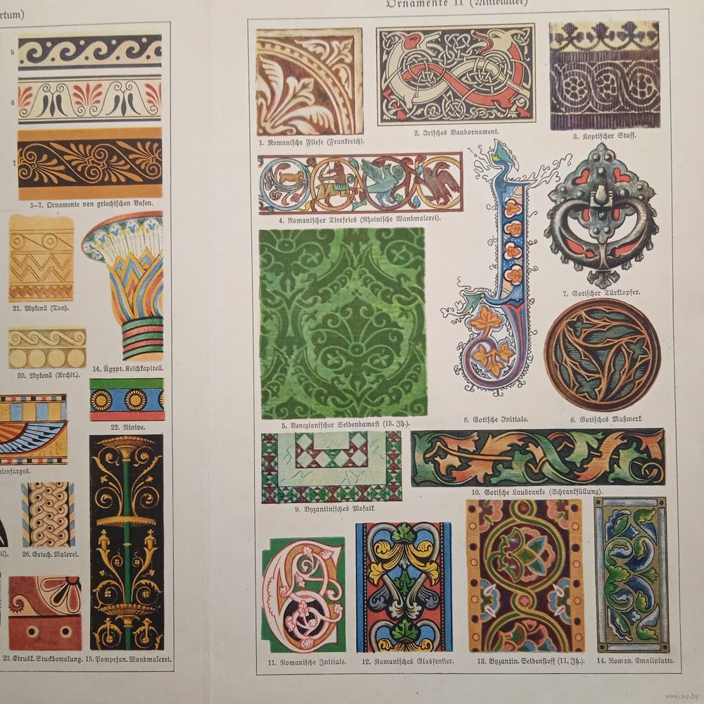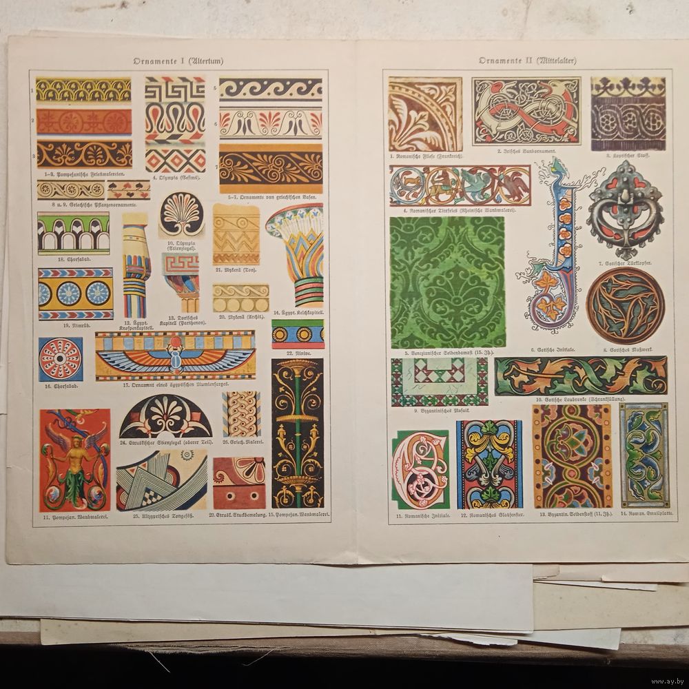 УЗОРЫ 1. 2. Литография Германия. Гравюра середина 19века 30x24см. РАСПРОДАЖА КОЛЛЕКЦИИ.