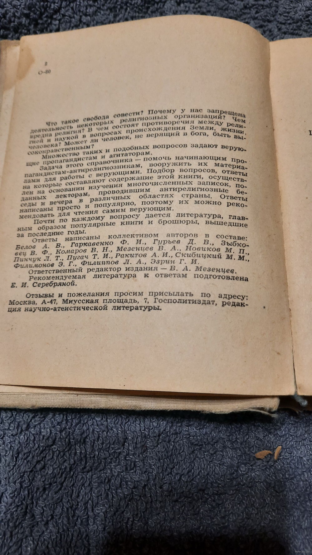 В.А.Мезенцев Ответы верующим, Москва 1962г.