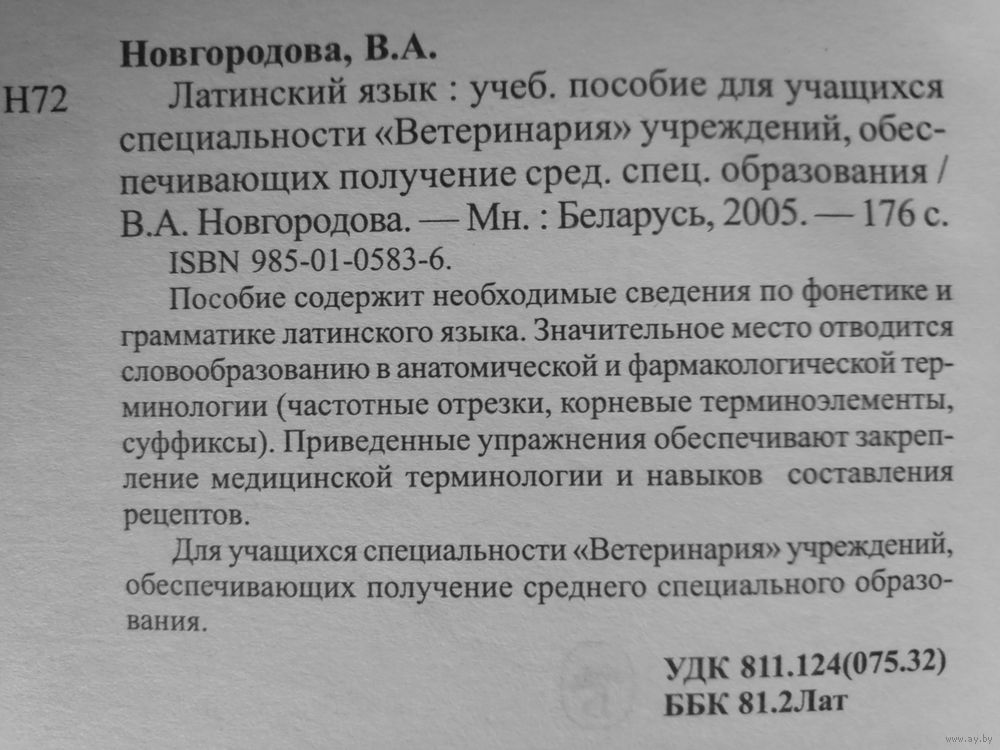 Латинский язык : учеб. пособие для учащихся специальности «Ветеринария» учреждений, обеспечивающих получение сред. спец. образования.