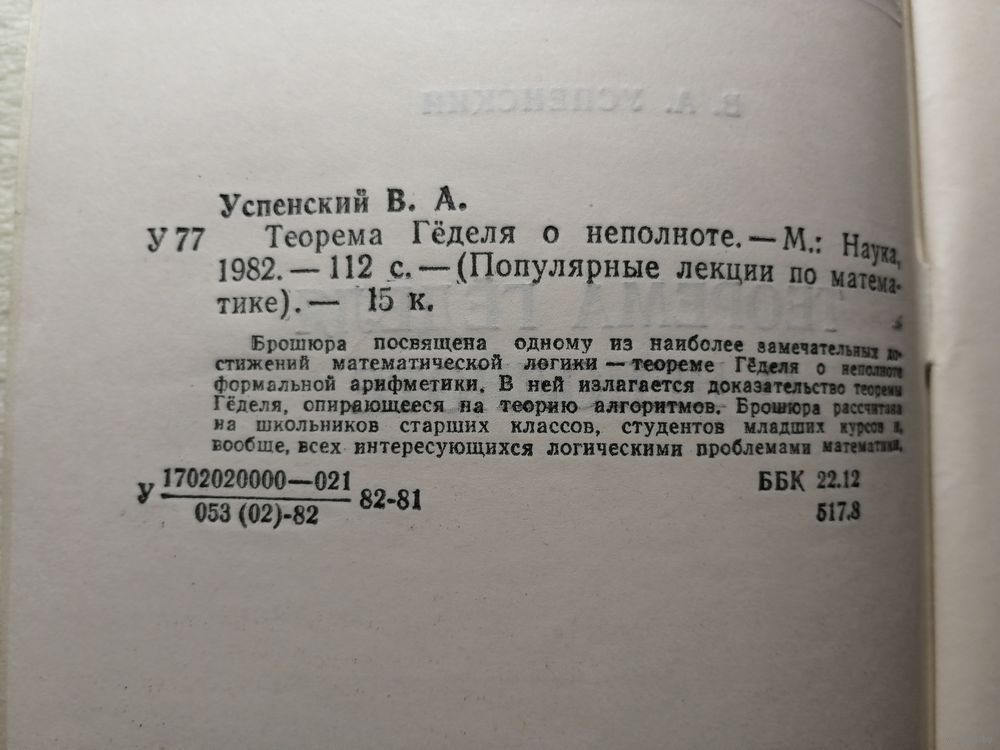 Брошюра посвящена одному из наиболее замечательных достижений математической логики - теореме Геделя о неполноте формальной арифметики. В ней излагается доказательство теоремы Геделя, опирающееся на теорию алгоритмов.
